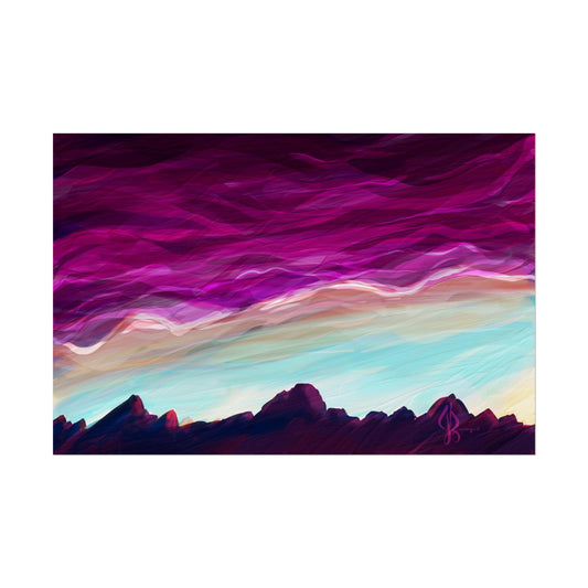 Pink Chinook Mountain Sunset Painting – Fine Art Print (Free Shipping)